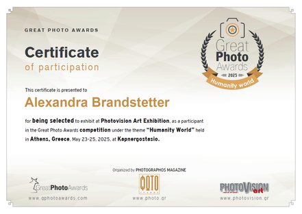 Beim diesjährigen GREAT-Photoaward "Humanity world" habe ich es auf die Shortlist geschafft und mein Motiv wurde in Athen, Griechenland, im Rahmen des dreitägigen Festivals ausgestellt.